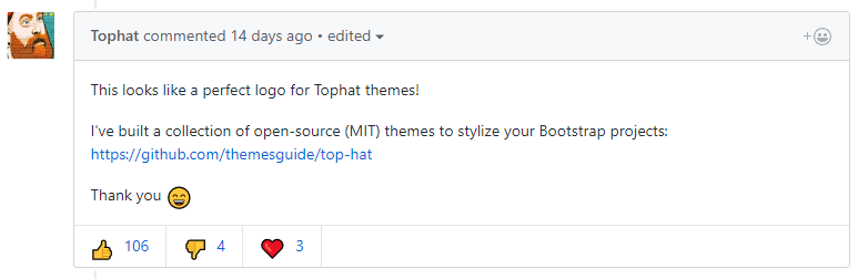 Login to GitHub, and give a 👍 thumbs-up to the "Tophat" comment